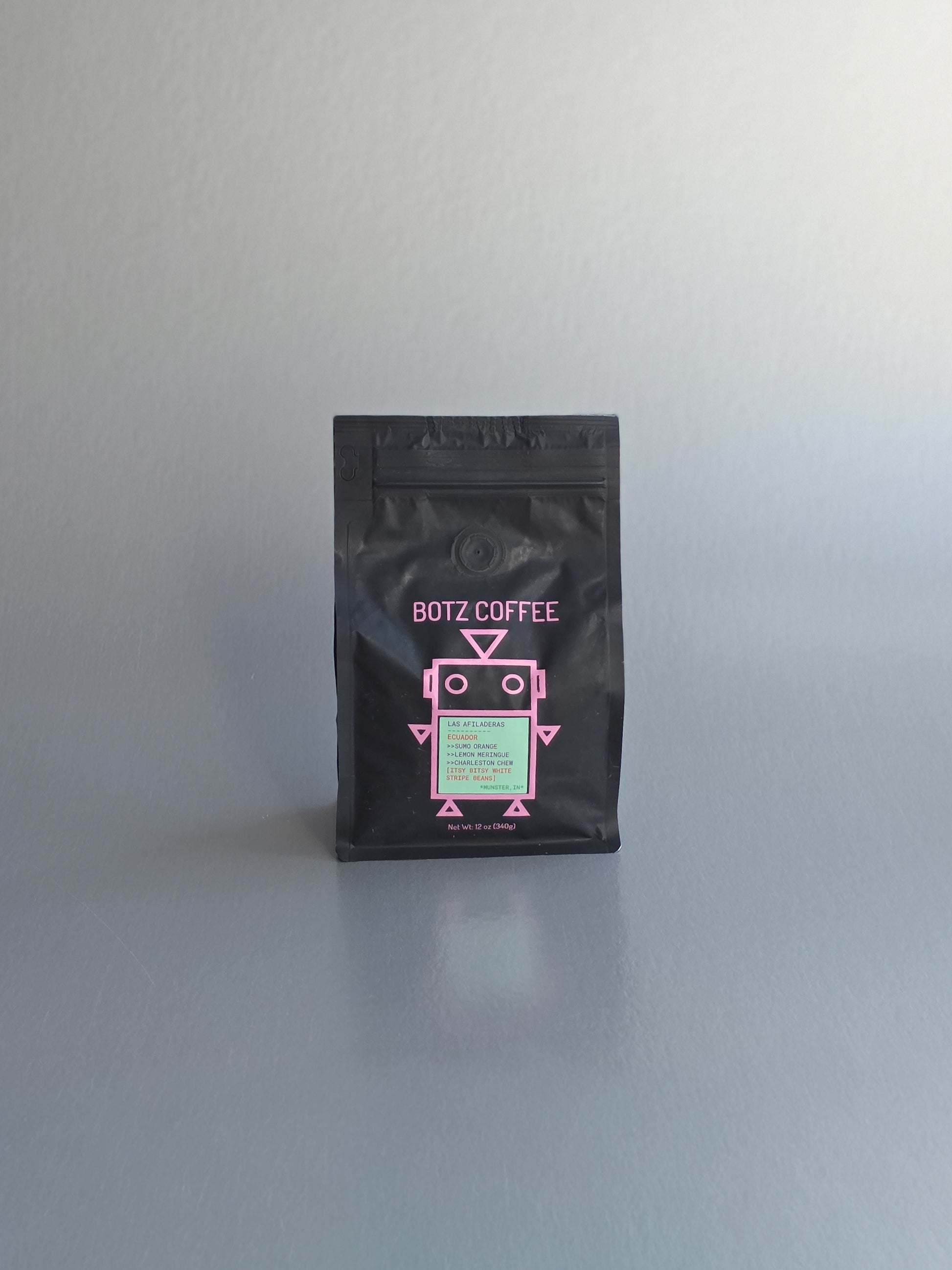Las Afiladeras offers a field blend comprising typica, caturra, and catucai. While we’re unfamiliar with catucai, we find bright characteristics of typica and caturra flourishing in the cup. Around this time of year, sumo oranges are in peak season, and BOTZ’s Mom adores them, so we’re quite familiar with their intense, heavy citrus sweetness. In the cup, you’ll experience a faint peachy flavor and citrus combo we find in the best glistening typica lots. We also get a super sugary caturra-like lemon bar sensation that reminds us of lemon meringue pie from Bakers Square (RIP). Lastly (and we find this very appealing across Ecuadorian coffees in general), there is a lovely “candy bar” finish to this coffee that grounds all the citrusy flavors preceding it. When BOTZ was a wee youngling, BOTZ’s Mom would freeze Charleston Chews (their peak form…trust), and we’d eat them for a quick dessert. That marshmallow-like (almost fluffernutter-esque) finish encourages frequent sips to get back to the flavor again and…again. Something to the itsy!